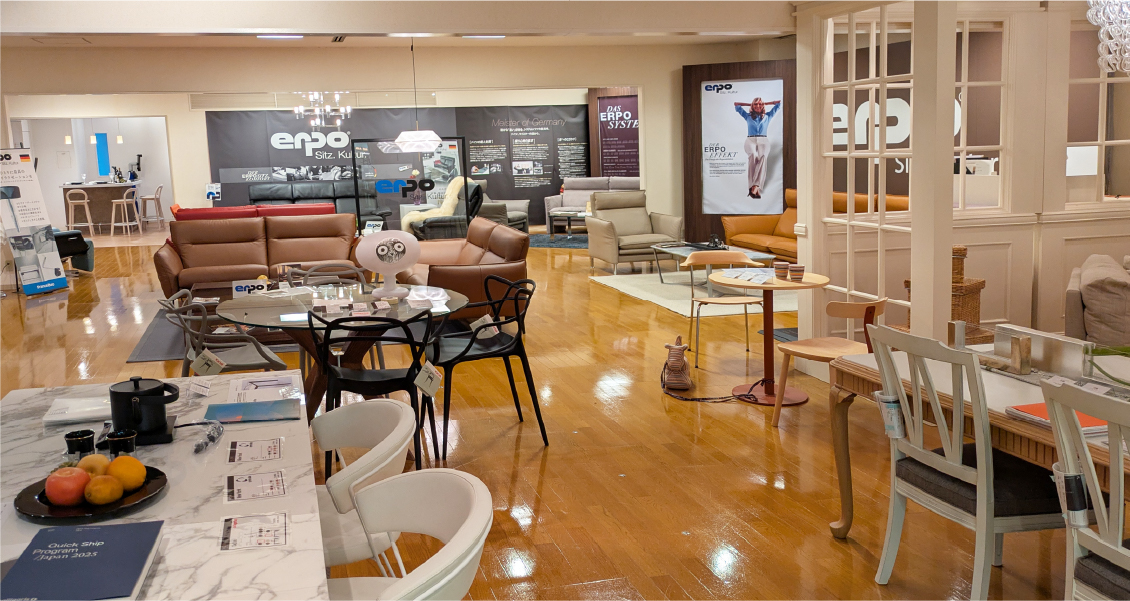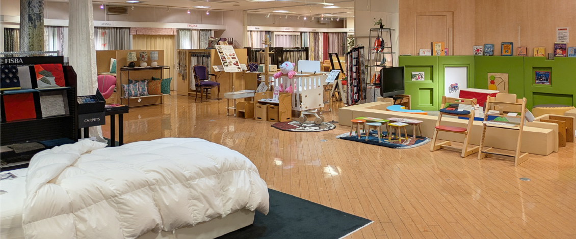 北村さん:よく聞かれるのが、「京都、梅田、心斎橋、神戸と関西に4店舗ある大丸松坂屋百貨店の家具のショールームとして使っているのですか?」ということです。外商の担当者がお客さまをお連れするようなイメージで、この店をとらえていらっしゃるのでしょうね。ところが、そのような使い方はあまりしていません。たしかに以前は外商ルートで来られる方が多かったのですが、最近はSNSなどでご覧になって来てくださるお客さまがほとんどになっています。心斎橋に行かれると、御堂筋沿いに家具の有名ブランドのショールームが建ち並んでいますよね。各ブランドのショールームが集積した場所と言っても、ひとつのお店ではそのブランドの商品しか見ることができません。われわれの店ですと、さまざまなブランドを一堂にご覧いただくことができます。ここには、なにしろ2500アイテムの商品があります。ひとつのブランドのショールームですと、同じブランドでリビング中(ひいては家中)を完結しなければなりません。でも、ここですと、「マットレスは気に入ったけど、フレームが気にいらない」というようなときには、われわれの切り口でさまざまな組み合わせがご提案できます。それが、この店の大きな魅力だと思います。