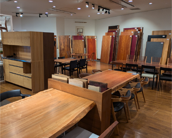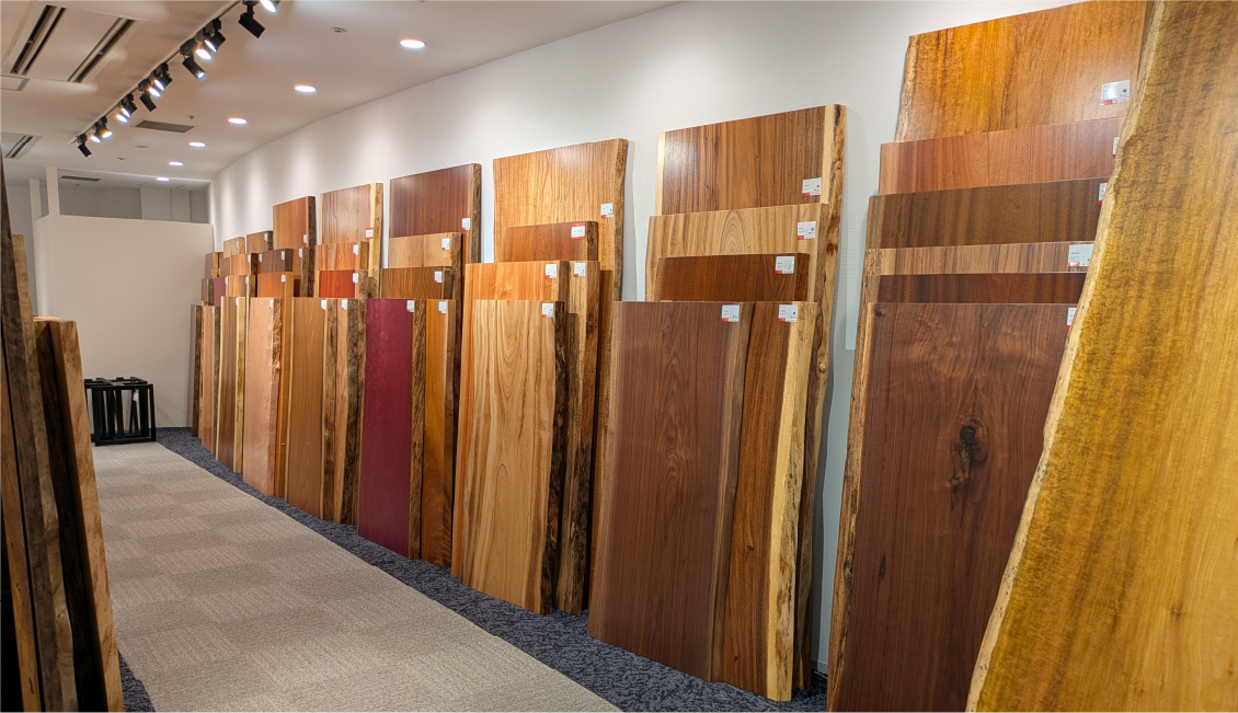 宮島さんのお話をうかがうと、熱い“一枚板愛”がヒシヒシと伝わってきました。商材に惚れ込んでいるから、お客さまにこころからオススメすることができるのでしょうね。じぶんだけのテーブル。世界にひとつのテーブル。なんだか、大きな浪漫がありますね。ぜひ、一度、一枚板とはどんなものか見て、触れて、温もりを感じてほしいものです。