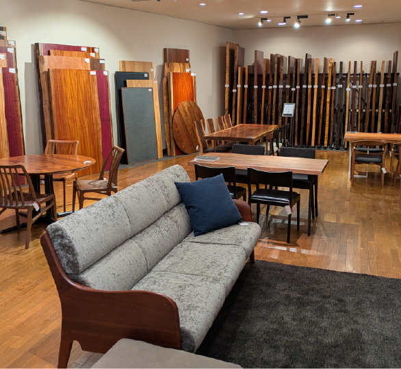 半分以上のお客さまが新築です。ですから、家の完成に合わせて納期が決まってきます。神戸ファッションマートにはさまざまなインテリアショップがありますから、いろんなブランドの家具を見ることができます。多くの家具を見て回られて、「一枚板も良いかもね」と、うちへ来られる方も大勢いらっしゃいます。ホームページで見て、インスタで見て、そして店で見て。と、家具を決めるまでにはいろんなプロセスがあります。すぐに決まるようなものではないですが、「思っていたものとは違うけど、これに惹かれるなあ」と、最後は直感でこれが良い!となるものだと思います。見て、触って、手に取ることで温もりが伝わり、ひとと木の関係ができていくものだと思います。それも、木の大きな魅力です。
