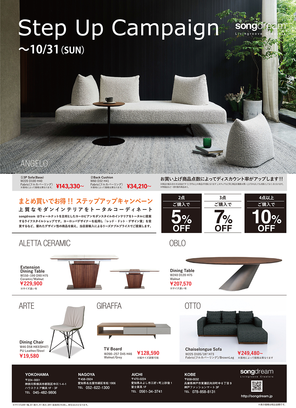 お買い上げ商品点数によってディスカウント率がアップする「ステップアップキャンペーン」を10月31日(日)まで開催しております!