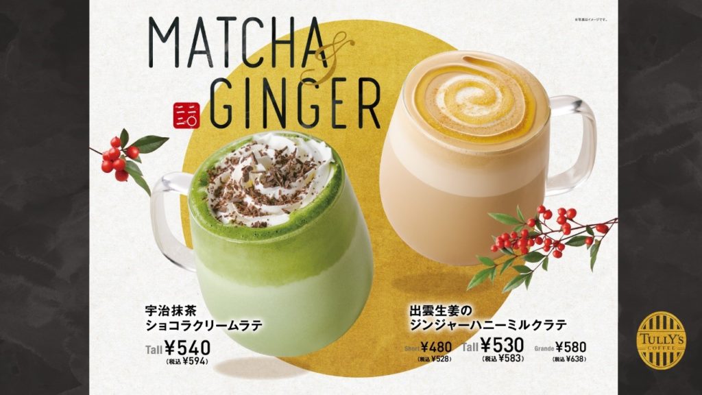 出雲生姜のジンジャーハニーミルクラテ S : ¥528 T : ¥583 G : ¥638 (全て税込み)