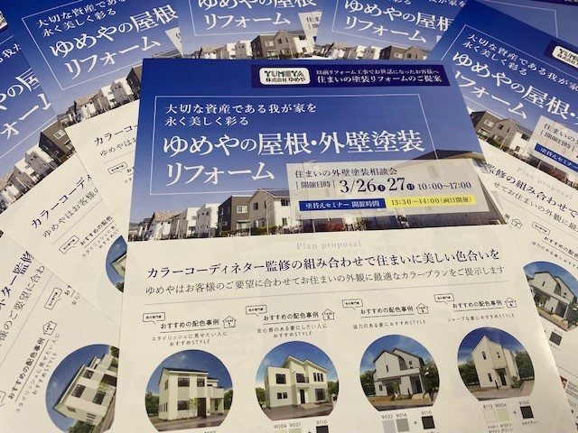 大切な資産である《我が家》を永く美しく彩る為の、ゆめやの屋根・外壁塗装相談会を開催致します!美しい色合いの組み合わせをカラーコーディネーターが監修し、お客様の御要望に合わせた最適なカラープランをご提案致します!