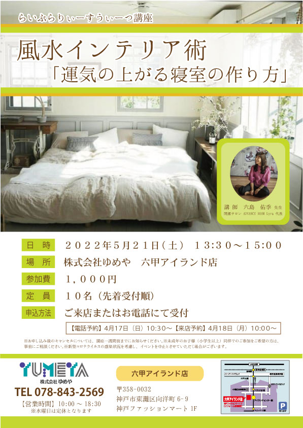 ゆめや初開催!風水インテリアの講座です!!寝ている間に運気アップができたらうれしいですよね!