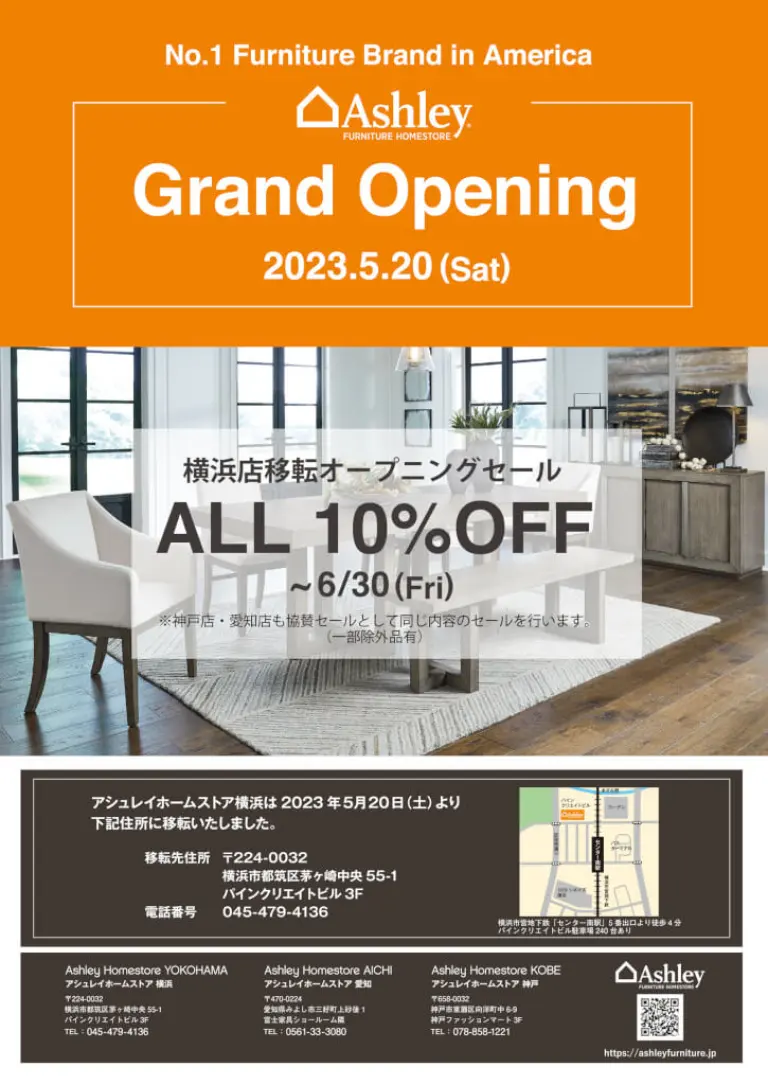 3F:Ashley Furniture HomeStoreでは、5月20日(土)から6月30日(金)まで【 “横浜店移転”:協賛セール】を開催致します!