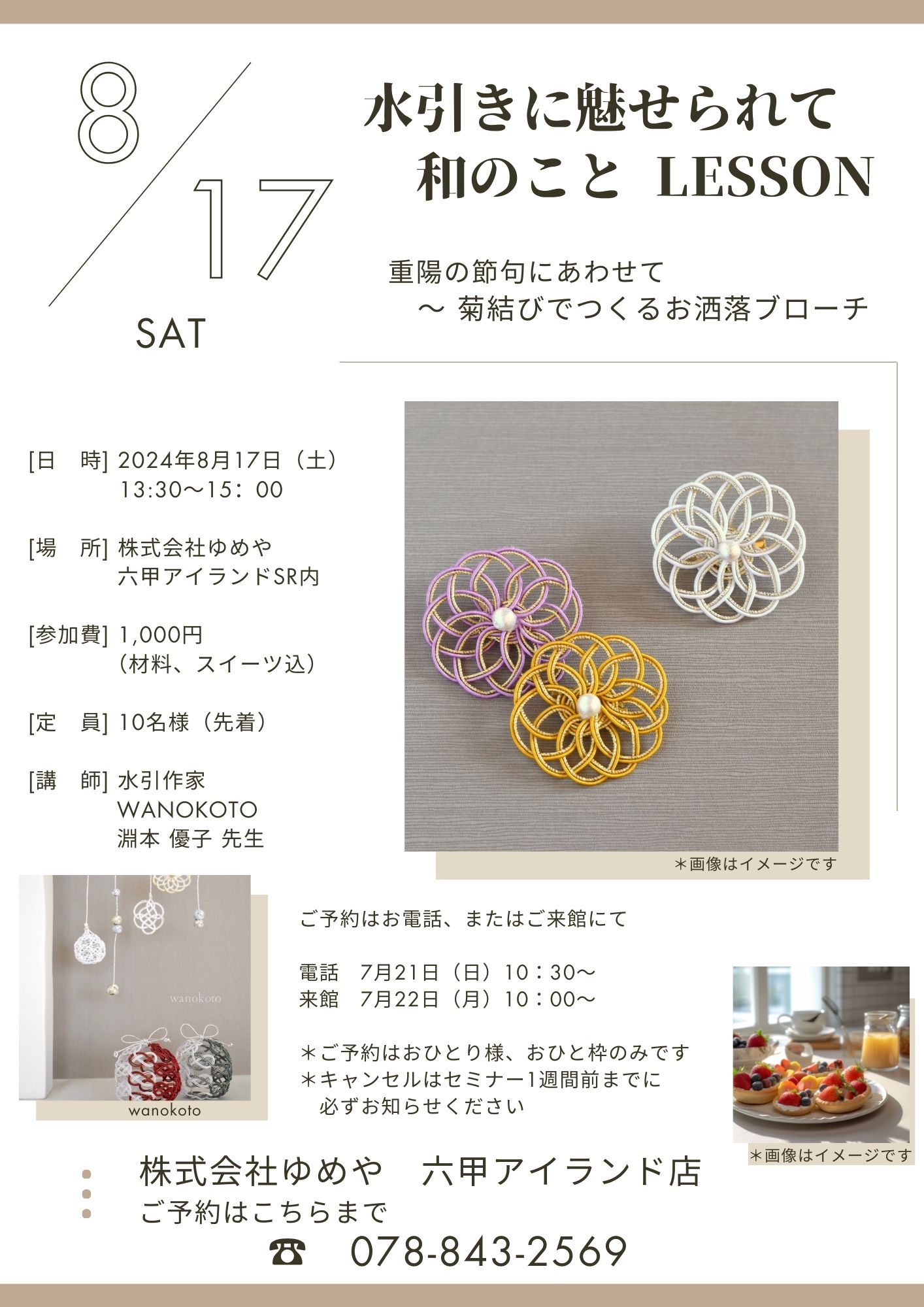 ” 「水引に魅せられて ~和のことLesson 菊結びブローチ編」 ”