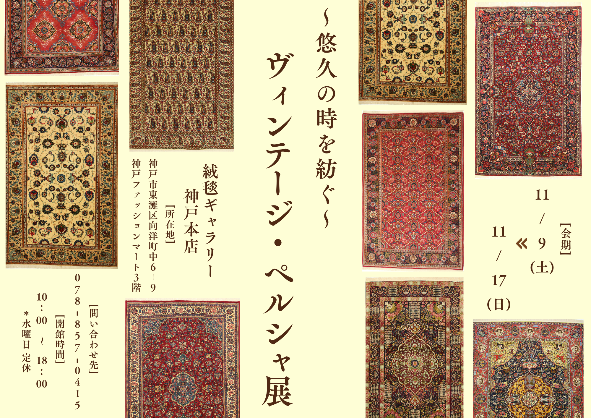 絨毯ギャラリー内で「~悠久の時を紡ぐ~ ヴィンテージ・ペルシャ展」を開催致します。