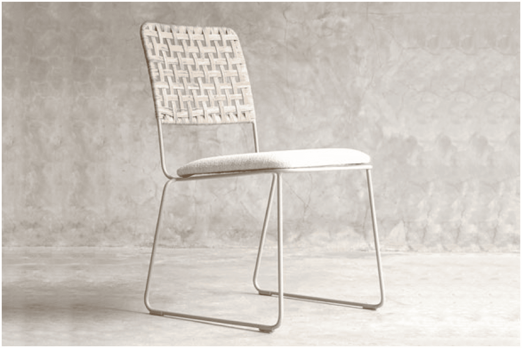 メタルフレームとシンセティックラタンのコントラストが美しく、ピスタチオカラーとオフホワイトの柔らかな配色が空間に上質なアクセントを添えます。背もたれには熟練技で編み込まれたシンセティックラタンを採用。光をやわらかく通し、軽やかな印象をつくりながら、耐久性・メンテナンス性にも優れています。ミニマルなフレームと明るいファブリックが、まるで浮遊するような軽快なフォルムを演出し、北欧・ナチュラルモダンのインテリアとも好相性。日常の食卓に、洗練された心地よさと穏やかなリズムをもたらす一脚です。