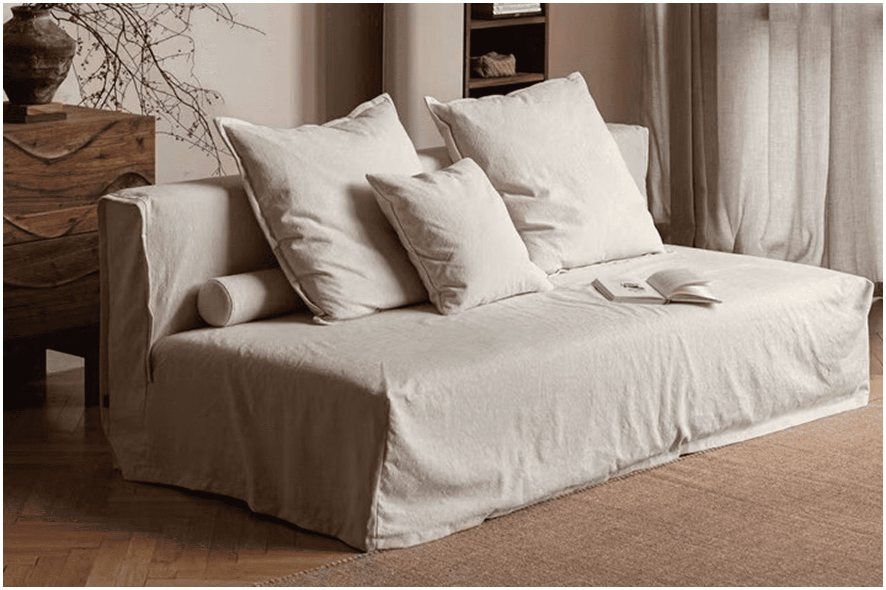 深く沈み込むような座り心地と包み込むクッション性が特徴で、自由に配置できる3種の付属クッションが、お好みの姿勢に合わせて最適なくつろぎをつくり出します。背もたれは取り外し可能で搬入しやすく、カバーはワンタッチで着脱可能。豊富な50色展開で、お部屋に合わせた美しいコーディネートが楽しめます。フェザー・ラテックス・ウレタンをバランスよく組み合わせた中材は、柔らかさと弾力性、形状保持力を兼ね備え、長時間でも快適。視線を遮らない低めのアームレスデザインが空間を広く見せ、座ったり寝転んだりと多彩な使い方が可能です。