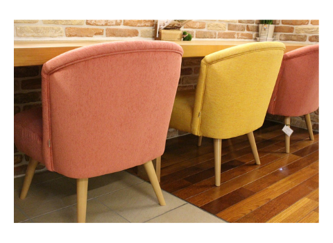 張地によっても雰囲気のかわるカフェチェアは普段選ばない自分好みの カラーを思い切って張って 刺し色にして みても可愛いですよ。