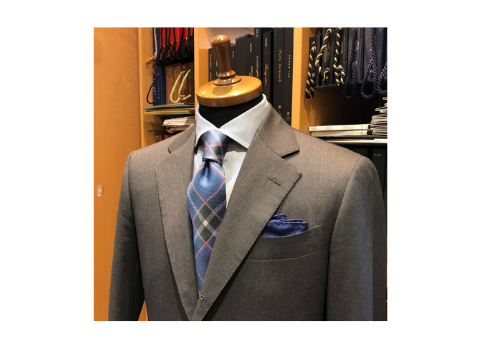 ネイビーのスーツでもグレーのスーツでも合う落ち着いた色合いと大きめのチェックが素晴らしいバランスに仕上がっています。