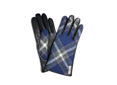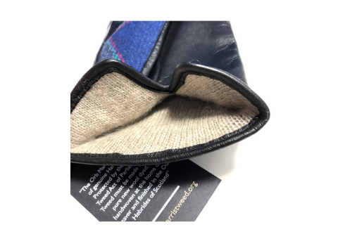 ハリスツイード x レザーのコンビ手袋はインナーがカシミアの贅沢仕様。