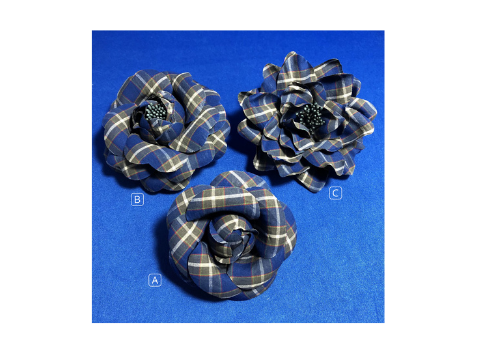 立体的な華やかなシェイプと落ち着いた色合いが相まって、いろんな場面で使いやすいコサージュです。