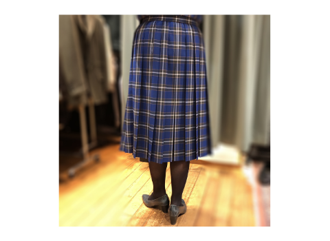 フロントはプリーツなし、バックに左右対称のプリーツを施した、巻きスカート風のデザインです。